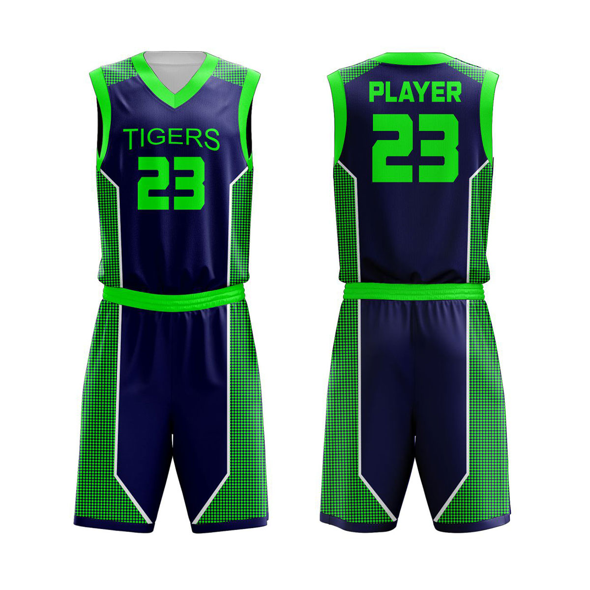 A basketball uniform typically consists of a sleeveless jersey and matching shorts. The jersey is made of lightweight, moisture-wicking fabric, often with team colors, logos, and player numbers. The shorts are knee-length, designed for comfort and freedom of movement during running, jumping, and quick directional changes. The uniform is completed with basketball shoes that provide ankle support and grip on the court. Together, the uniform is designed for optimal performance, comfort, and durability, allowing players to move with agility and ease during the game.